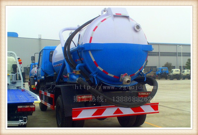 吸污車性能介紹: 組成部分:主要由東風153吸污車原裝底盤(全國聯保),真空吸污泵、取力器、傳動軸、水氣分離器、油氣分離器、多路換向閥、罐體、放污閥、視污窗、真空壓力表、管網系統、液壓系統、操作系統等組成。 罐體:使用國標優質5mm碳鋼,罐體封頭一次壓鑄成型、罐體可后開、雙頂自卸,罐內污物可通過后蓋直接傾倒,便于清理罐體內的沉積物、凝固物及對罐體內部進行維修、保養。可選擇使用不銹鋼、鋼襯塑,罐體金屬漆。 液壓系統:由油箱、油泵、多路換向閥、液壓缸、濾油器和管路組成,該系統能實現自卸罐內污物的專用功能。 操作系統:通過操縱多路換向閥的手柄可完成自卸罐內污物工作。(在操作多路換向閥時應掛上取力器帶動油泵工作)。 卸污結構:可通過罐體尾部排污口直接排污,也可打開罐體后門自卸污物,由兩只液壓油缸直接舉升吸污罐進行排污,罐底與地面夾角不小于45度,以實現污物依靠自重能自行卸下。 產品優點:具有抽吸效率高、自吸、自排及自卸等功能。抽滿糞罐時間:≤5分鐘,吸程:≥6米。據有使用壽命長,真空度高(比吸糞車的真空度更高、吸程更遠、壓力更大),工作速度快,操作簡便,運輸方便等特點。安裝進口防溢流裝置,防止糞便、污水因吸滿倒灌至真空泵系統。 產品用途:主要適合用于下水道內的淤積物的抽吸、裝運和排卸,尤其是可 吸下水道泥漿、淤泥、石子、磚塊等較大物體。