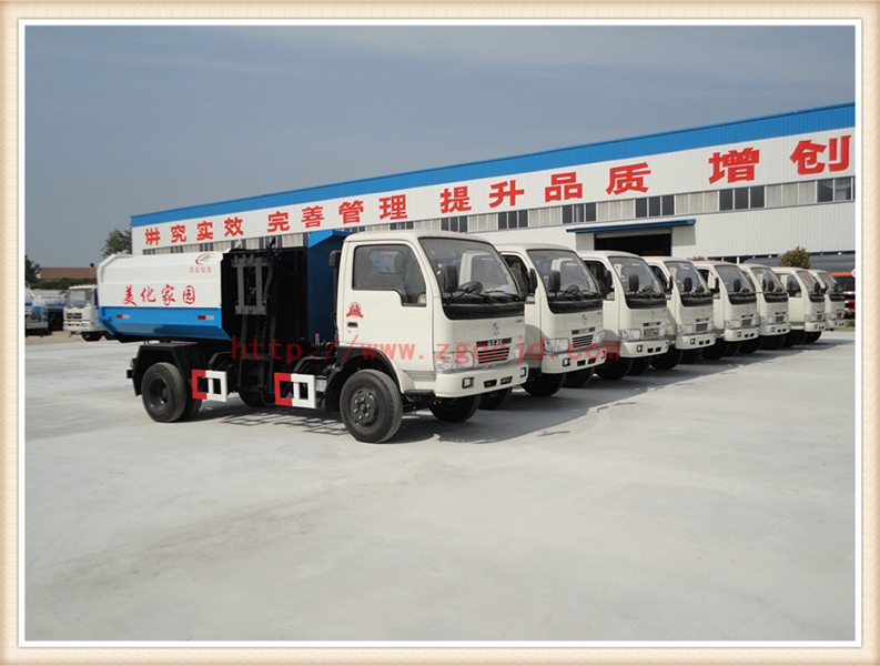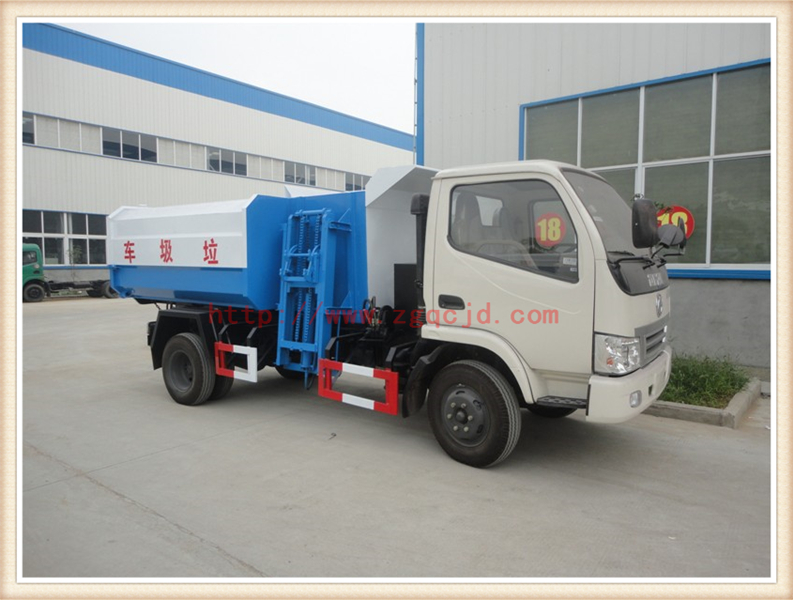 產(chǎn)品介紹:自裝卸式垃圾車又稱掛桶式垃圾車,是一種與裝垃圾的鐵桶、塑料桶配套使用的環(huán)衛(wèi)專用車輛,可以一車配多個(gè)垃圾桶,降低了配備成本,增加了收集管理空間,主要用于環(huán)衛(wèi)部門、社區(qū)進(jìn)行生活垃圾收集,大型工礦企業(yè)垃圾清運(yùn)等。 組成部分:國(guó)內(nèi)知名品牌東風(fēng)福瑞卡原裝底盤(全國(guó)聯(lián)保)、箱體裝置(密封式)、取力器、多路換向閥、自裝料裝置、液壓系統(tǒng)、操作系統(tǒng)等組成。 箱體裝置:為密封式結(jié)構(gòu),在箱體前部設(shè)有進(jìn)料箱蓋,側(cè)面設(shè)有自裝料裝置,箱體后部設(shè)有卸料門。 自裝料裝置:自裝料裝置設(shè)在箱體的前部側(cè)面,由支架、油缸、鏈條結(jié)構(gòu)、吊鉤等組成。此裝置可將外部垃圾桶內(nèi)的垃圾提升裝入箱體內(nèi)。 液壓系統(tǒng):由油箱、油泵、多路換向閥、液壓缸、濾油器和管路組成,該系統(tǒng)能實(shí)現(xiàn)裝卸垃圾的各種專用功能。 操作系統(tǒng):通過該系統(tǒng)可以實(shí)現(xiàn)各功能的轉(zhuǎn)換。通過操縱多路換向閥的手柄可完成裝料和卸料工作。(在操作多路換向閥時(shí)應(yīng)掛上取力器帶動(dòng)油泵工作) 主要特點(diǎn):垃圾收集方式簡(jiǎn)便、高效、環(huán)保性好(不產(chǎn)生二次污染),質(zhì)量可靠,故障率低,維護(hù)方便,運(yùn)行費(fèi)用低等特點(diǎn)。廣泛適用于適用于市政環(huán)衛(wèi)、市政、廠礦企業(yè)、物業(yè)小區(qū)、垃圾多而集中的居民區(qū)、城市街道垃圾處理。