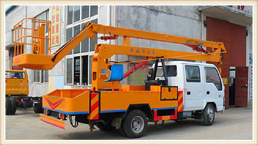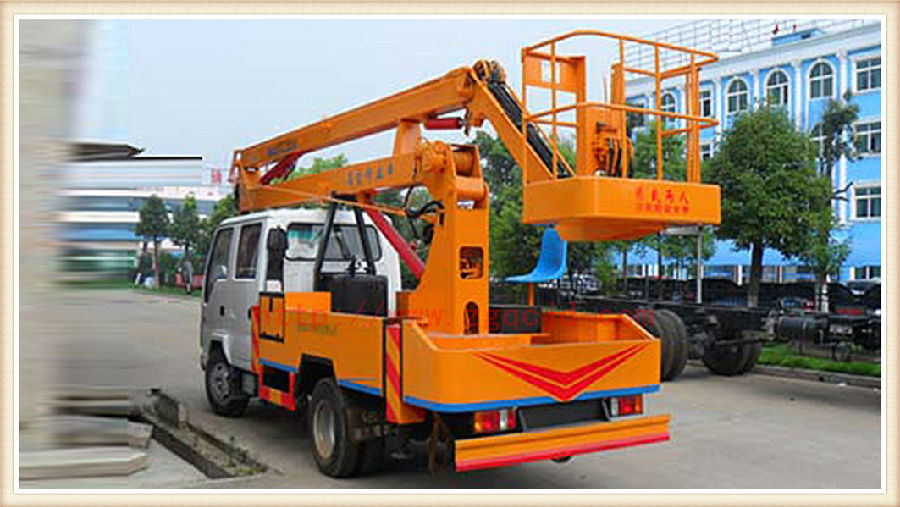 產品介紹:湖北程力高空作業車以東風福瑞卡、江鈴、慶鈴、福田、江淮、東風145、153等系列原裝底盤改裝而成,外形美觀、可坐3-6人,系全回轉兩節(三節)折臂式液壓多功能工程作業車,它能將工作人員平穩、安全的送到10-24米的高空作業。 取力裝置:由油泵、取力器、電氣控制開關、氣動電磁閥組成.它是通過安裝在汽車駕駛室內的取力器離合電氣開關的通斷,使取力齒輪與汽車變速箱內取力輸出齒接合或分離,從而使油泵工作或停止。(注意:汽車行駛時,取力器中的取力齒應脫開,油泵不工作) 回轉機構:由液壓馬達、齒輪減速器、回轉支撐等組成。其工作原理是:液壓馬達驅動減速器,減速器輸出軸上的小齒輪旋轉推動回轉支承,使其回轉。 液壓系統:由一只定量泵供油,系統工作壓力16Mpa,流量25L/min,其工作壓力由溢流閥調定(出廠時,本公司已調好).當取力齒輪接合時,帶動主油泵運轉,油箱內的油通過油泵輸出,到達支腿操作閥。支腿操作完畢后,將分配手柄撥到上車,此時液壓油就從支腿油路切換到上車,上車部分即可進行工作。 操作系統:通過該系統可以實現各功能的轉換。通過操縱多路換向閥的手柄可完成伸縮支腿和工作臂上下旋轉工作。(在操作多路換向閥時應掛上取力器帶動油泵工作) 產品優點:主臂上設有起重結構(限吊一噸),上臂、下臂、回轉和起重液壓系統均為獨特無級調速系統,具有節能和動作靈活,平穩安全可靠的特點。支腿分單獨、可調,能實現整車在平路上調平。液壓和電器控制系統均設有各種限位裝置及發動機緊急熄火裝置,出現故障自動切斷電源或停止發動機,確保安全,電動操作系統采用防水開關,避免開關進水、銹蝕漏電的問題。 工作范圍:產品廣泛適用于電氣線路檢修、路燈維修、廣告、攝影、高空作業清洗、園林綠化等領域。