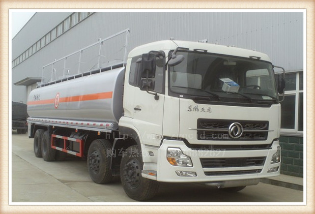 油罐車性能介紹: 1、天龍前四后八油罐車專用部分由罐體、取力器、自流閥,兩根油管,滅火器,爬梯一個,齒輪油泵、耐油管、管網系統組成、滅火器等部分組成。