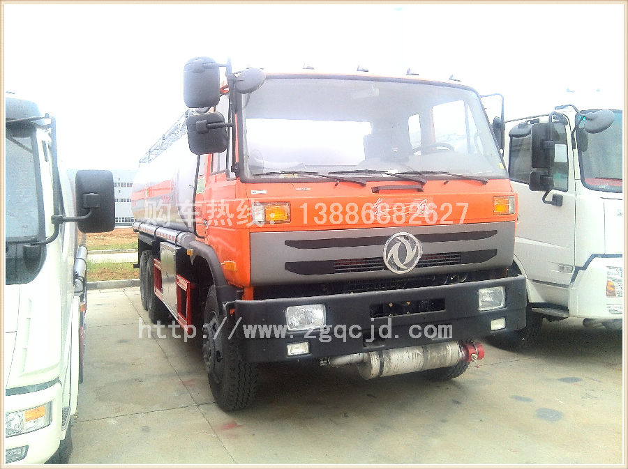 油罐車性能介紹: 1、東風后雙橋油罐車專用部分由罐體、取力器、自流閥,兩根油管,滅火器,爬梯一個,齒輪油泵、耐油管、管網系統組成、滅火器等部分組成。