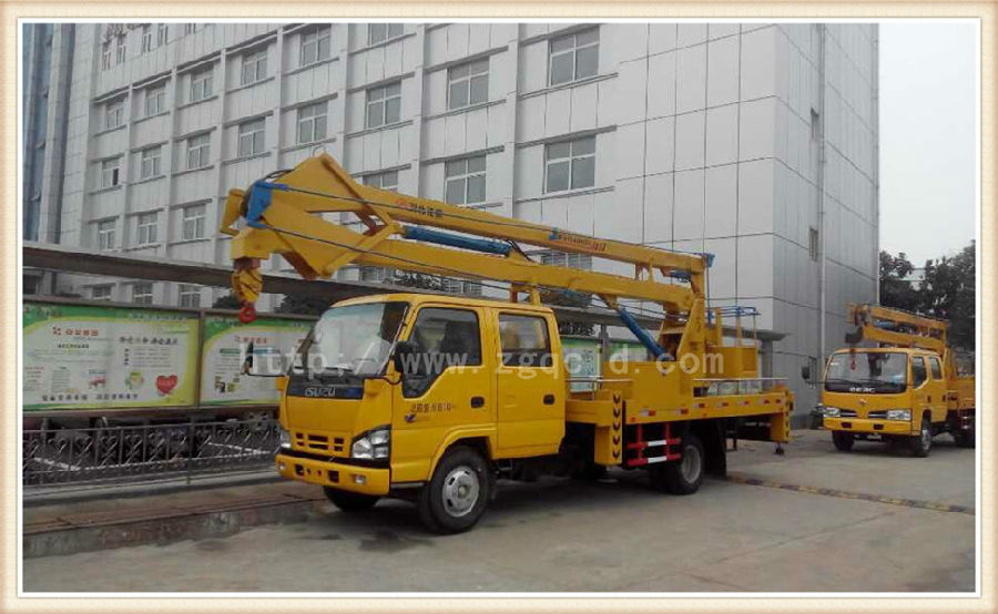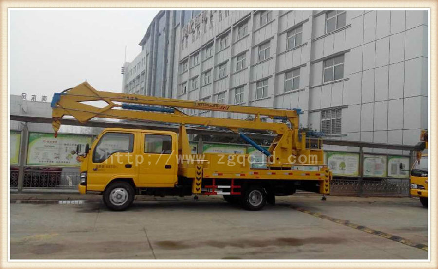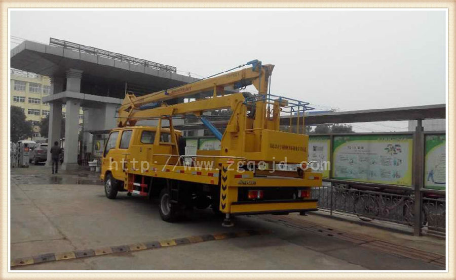 產(chǎn)品介紹:湖北程力高空作業(yè)車以東風福瑞卡、江鈴、慶鈴、福田、江淮、東風145、153等系列原裝底盤改裝而成,外形美觀、可坐3-6人,系全回轉(zhuǎn)兩節(jié)(三節(jié))折臂式液壓多功能工程作業(yè)車,它能將工作人員平穩(wěn)、安全的送到10-24米的高空作業(yè)。 取力裝置:由油泵、取力器、電氣控制開關(guān)、氣動電磁閥組成.它是通過安裝在汽車駕駛室內(nèi)的取力器離合電氣開關(guān)的通斷,使取力齒輪與汽車變速箱內(nèi)取力輸出齒接合或分離,從而使油泵工作或停止。(注意:汽車行駛時,取力器中的取力齒應脫開,油泵不工作) 回轉(zhuǎn)機構(gòu):由液壓馬達、齒輪減速器、回轉(zhuǎn)支撐等組成。其工作原理是:液壓馬達驅(qū)動減速器,減速器輸出軸上的小齒輪旋轉(zhuǎn)推動回轉(zhuǎn)支承,使其回轉(zhuǎn)。 液壓系統(tǒng):由一只定量泵供油,系統(tǒng)工作壓力16Mpa,流量25L/min,其工作壓力由溢流閥調(diào)定(出廠時,本公司已調(diào)好).當取力齒輪接合時,帶動主油泵運轉(zhuǎn),油箱內(nèi)的油通過油泵輸出,到達支腿操作閥。支腿操作完畢后,將分配手柄撥到上車,此時液壓油就從支腿油路切換到上車,上車部分即可進行工作。 操作系統(tǒng):通過該系統(tǒng)可以實現(xiàn)各功能的轉(zhuǎn)換。通過操縱多路換向閥的手柄可完成伸縮支腿和工作臂上下旋轉(zhuǎn)工作。(在操作多路換向閥時應掛上取力器帶動油泵工作) 產(chǎn)品優(yōu)點:主臂上設有起重結(jié)構(gòu)(限吊一噸),上臂、下臂、回轉(zhuǎn)和起重液壓系統(tǒng)均為獨特無級調(diào)速系統(tǒng),具有節(jié)能和動作靈活,平穩(wěn)安全可靠的特點。支腿分單獨、可調(diào),能實現(xiàn)整車在平路上調(diào)平。液壓和電器控制系統(tǒng)均設有各種限位裝置及發(fā)動機緊急熄火裝置,出現(xiàn)故障自動切斷電源或停止發(fā)動機,確保安全,電動操作系統(tǒng)采用防水開關(guān),避免開關(guān)進水、銹蝕漏電的問題。 工作范圍:產(chǎn)品廣泛適用于電氣線路檢修、路燈維修、廣告、攝影、高空作業(yè)清洗、園林綠化等領(lǐng)域。