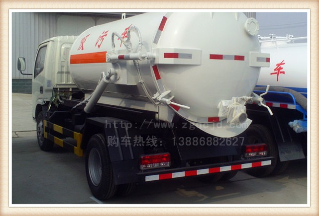 吸污車性能介紹: 組成部分:主要由東風小霸王3-5立方吸污車原裝底盤(全國聯保),真空吸污泵、取力器、傳動軸、水氣分離器、油氣分離器、多路換向閥、罐體、放污閥、視污窗、真空壓力表、管網系統、液壓系統、操作系統等組成。 罐體:使用國標優質5mm碳鋼,罐體封頭一次壓鑄成型、罐體可后開、雙頂自卸,罐內污物可通過后蓋直接傾倒,便于清理罐體內的沉積物、凝固物及對罐體內部進行維修、保養。可選擇使用不銹鋼、鋼襯塑,罐體金屬漆。 液壓系統:由油箱、油泵、多路換向閥、液壓缸、濾油器和管路組成,該系統能實現自卸罐內污物的專用功能。 操作系統:通過操縱多路換向閥的手柄可完成自卸罐內污物工作。(在操作多路換向閥時應掛上取力器帶動油泵工作)。 卸污結構:可通過罐體尾部排污口直接排污,也可打開罐體后門自卸污物,由兩只液壓油缸直接舉升吸污罐進行排污,罐底與地面夾角不小于45度,以實現污物依靠自重能自行卸下。 產品優點:具有抽吸效率高、自吸、自排及自卸等功能。抽滿糞罐時間:≤5分鐘,吸程:≥6米。據有使用壽命長,真空度高(比吸糞車的真空度更高、吸程更遠、壓力更大),工作速度快,操作簡便,運輸方便等特點。安裝進口防溢流裝置,防止糞便、污水因吸滿倒灌至真空泵系統。 產品用途:主要適合用于下水道內的淤積物的抽吸、裝運和排卸,尤其是可 吸下水道泥漿、淤泥、石子、磚塊等較大物體。