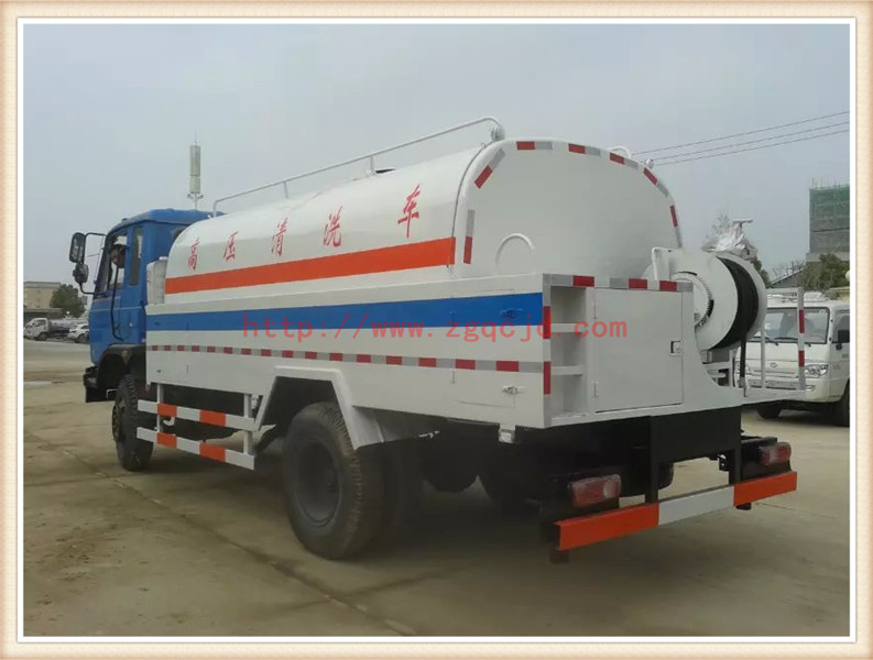 高壓清洗車性能介紹: 組成部分:主要由東風145原裝底盤(全國聯保)、水罐、水路系統、液壓系統、卷管器、沖洗管道、高壓噴頭等組成。 水路系統:包括水罐、高壓水泵(意大利進口泵)、進水管、泄水截止閥、濾水器、水位表、進水截止閥、水壓表、壓力表開關、高壓噴頭、高壓三通閥、卷筒。 液壓系統:包括油位計、油箱、過濾器、閘閥、油泵、溢流閥、節流閥、油壓表、單向閥、油馬達、換向閥、單向閥、開關。 選裝:可加裝灑水裝置,安裝綠化灑水炮、前沖、后灑、側噴,可進行綠化灑水、噴霧、壓塵、高壓沖洗路面,還可加裝吸污功能,集清洗、吸污于一體。 產品特點:具有壓力高、節約水、作業時間長、清洗效果好的特點。 工作范圍:主要用于清洗城市下水道的沉積物,疏通下水道。也可用于清洗工業排液管道、壁面等,并可兼作灑水、運水和沖洗公路用,緊急時可用于救火。